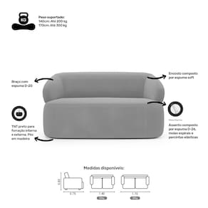 Detalhes que Fazem a Diferença:Os braços do sofá são compostos por espuma D-20, garantindo conforto adicional. Os pés de madeira proporcionam estabilidade e um toque natural ao design.