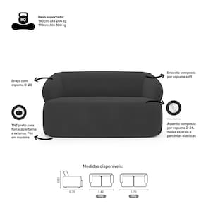 Detalhes que Fazem a Diferença:Os braços do sofá são compostos por espuma D-20, garantindo conforto adicional. Os pés de madeira proporcionam estabilidade e um toque natural ao design.