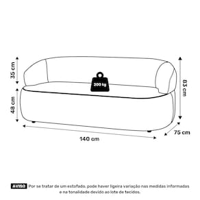 ** POR SE TRATAR DE UM ESTOFADO, AS MEDIDAS PODEM SOFRER UMA VARIAÇÃO DE ATÉ 3 CM.