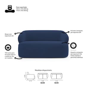 Os braços do sofá são compostos por espuma D-20, garantindo conforto adicional. Os pés de madeira proporcionam estabilidade e um toque natural ao design.