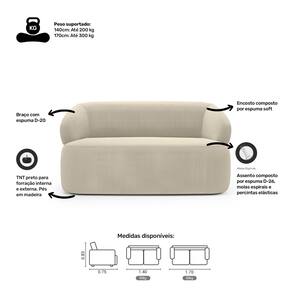 Os braços do sofá são compostos por espuma D-20, garantindo conforto adicional. Os pés de madeira proporcionam estabilidade e um toque natural ao design.