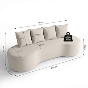 Sofá Orgânico Curvo 2,10m 3 Lugares Com Almofadas Ibiza Bexs Bege