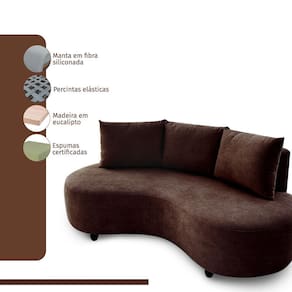 Assentos com espuma flexível de poliuretano densidade 29kg/m macia certificada, de fabricação própria, sustentados por percinta elástica. Almofada de Encosto em fibra siliconada. Estrutura de madeira maciça de eucalipto 100% reflorestada. Fixação da estrutura: grampos galvanizados anti-ferrugem. Apoiados no chão com pés em madeira de 8 cm. Revestimento/tecido: Boucle 100% poliéster, com toque macio.