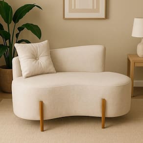 Sofá Orgânico Divã Boucle Com Pés de Madeira - 7 Decor Rosê -