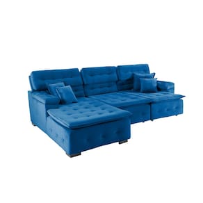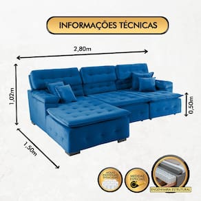 Sofá Orlando 2.80x1.50m com Chaise, Retrátil e Reclinável - Azul Royal