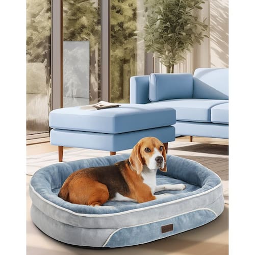OhGeni Sofá ortopédico para cães grandes com suporte de espuma de memória, almofadas de reforço de quatro lados, tecido macio resistente a rasgos e capa de pelúcia removível lavável na máquina de 89
