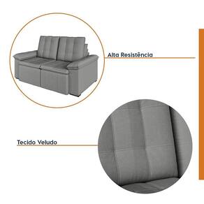 Sofá Palmeira Retrátil Reclinável sem caixa é a solução perfeita para quem tem pouco espaço disponível. Com ele você poderá acomodar suas visitas com conforto e praticidade em ambientes pequenos, a otimização do espaço é um ponto chave para garantir maior conforto e mobilidade. O sofá Palmeira possui braços de apenas 15cm de largura, proporcionando um maior aproveitamento da área disponível na sua sala de estar. Produzido em madeira maciça de eucalipto. Depois nos conte como foi a experiência de compra e como ficou seu ambiente nos comentários. Acompanha Almofadas extras: Não Almofada do assento: Fixa Almofada do encosto: Removível Altura do assento até o chão: 48 cm Altura do Encosto: 58 cm Altura dos Pés: 3 cm Ambiente Principal: Sala de Estar Complexidade da Montagem: Baixa: pode ser montado por uma pessoa sozinha Cor: Cinza Cor do Produto: Cinza Densidade do Assento: D-24 Densidade do Encosto: Camadas de Densidades Diferentes Enchimento do Assento: Espuma Enchimento do Encosto: Fibra Siliconada Estilo de Braço: Braços Pillow Top Firmeza do Assento: Médio Informações Complementares: Sofá sem caixa que otimiza o espaço Itens Inclusos: Sofa, 08 pés, Manual de Montagem Largura do Sofá Maior: cm Linha ou Coleção: Palmeira Manual de Montagem e Instalação: https://cdn2.madeiramadeira.com.br/atributo/takei-estofados/1544732-manual-sofapalmeira180-200-220.pdf Material dos Pés: PVC Necessita Montagem: Sim Origem do Produto: Nacional Peso: 69 kg Pet Friendly: Não Possui Entrada USB: Não Possui Percintas Elásticas: Sim Possui Pés: 08 Possui Rodízio: Sim Profundidade Quando Estendido: 134 cm Recomendações de Uso, Manutenção e Limpeza: Evitar exposição direta à luz solar, limpar com escova macia e aspirar o pó semanalmente, não utilizar produtos químicos, removedores, alvejantes, etc. Evite exercer pressão excessiva sobre determinada partes do estofado, não utilizar para limpeza equipamentos a vapor de água. Rodízio com Trava: Não Sistema de Montagem: Encaixe Suporta Até (kg): 300 kg Tecido Predominante: Veludo Tipo de Encosto: Regulável Tipo de Mola: Molas Bonnel Ean: 7909903442555