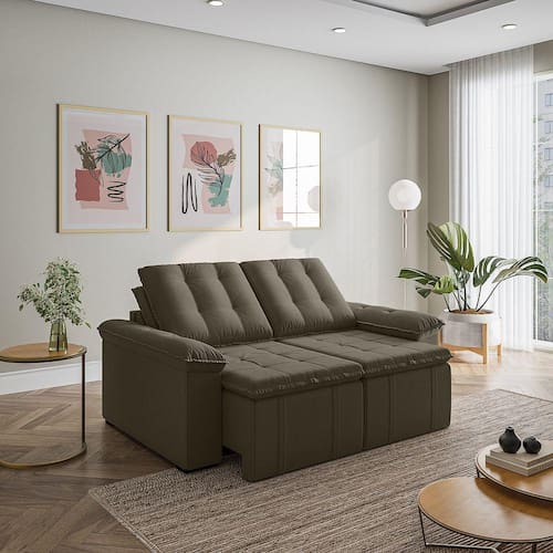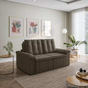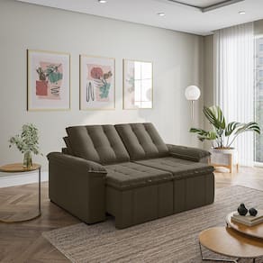 Sofá Palmeira Retrátil Reclinável sem caixa é a solução perfeita para quem tem pouco espaço disponível. Com ele você poderá acomodar suas visitas com conforto e praticidade em ambientes pequenos, a otimização do espaço é um ponto chave para garantir maior conforto e mobilidade. O sofá Palmeira possui braços de apenas 15cm de largura, proporcionando um maior aproveitamento da área disponível na sua sala de estar. Produzido em madeira maciça de eucalipto. Depois nos conte como foi a experiência de compra e como ficou seu ambiente nos comentários. Acompanha Almofadas extras: Não Almofada do assento: Fixa Almofada do encosto: Removível Altura do assento até o chão: 48 Altura do Encosto: 58 Altura dos Pés: 3 Ambiente Principal: Sala de Estar Complexidade da Montagem: Baixa: pode ser montado por uma pessoa sozinha Cor: Grafite Cor do Produto: Grafite Densidade do Assento: D-24 Densidade do Encosto: Camadas de Densidades Diferentes Enchimento do Assento: Espuma Enchimento do Encosto: Fibra Siliconada Estilo de Braço: Braços Pillow Top Firmeza do Assento: Médio Informações Complementares: Sofá sem caixa que otimiza o espaço Itens Inclusos: Sofa, 08 pés, Manual de Montagem Linha ou Coleção: Palmeira Manual de Montagem e Instalação: https://cdn2.madeiramadeira.com.br/atributo/takei-estofados/1544732-manual-sofapalmeira180-200-220.pdf Material dos Pés: PVC Necessita Montagem: Sim Origem do Produto: Nacional Peso: 69 Pet Friendly: Não Possui Entrada USB: Não Possui Percintas Elásticas: Sim Possui Pés: 08 Possui Rodízio: Sim Profundidade Quando Estendido: 134 Recomendações de Uso, Manutenção e Limpeza: Evitar exposição direta à luz solar, limpar com escova macia e aspirar o pó semanalmente, não utilizar produtos químicos, removedores, alvejantes, etc. Evite exercer pressão excessiva sobre determinada partes do estofado, não utilizar para limpeza equipamentos a vapor de água. Rodízio com Trava: Não Sistema de Montagem: Encaixe Suporta Até (kg): 300 Tecido Predominante: Veludo Tipo de Encosto: Regulável Tipo de Mola: Molas Bonnel Ean: 7909903442562