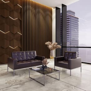 Conforto, Beleza e Sofisticação você encontra no Conjunto de sofá 3.1 lugares Isis, a sua recepção ou seu escritório para estarem completos merecem esse Sofá e essa poltrona. Tem como principal característica o conforto e seu estilo moderno. Excelente estrutura composta por madeira de reflorestamento, base de metal cromado, tecido sintético de alta qualidade, resistente, durável e possui uma aparência similar ao couro marroml o que torna esse produto mais do que especial. Acompanha Almofadas extras: Não Almofada do assento: Fixa Almofada do encosto: Removível Altura do assento até o chão: 45 Altura do Encosto: 49 Altura dos Pés: 12 Ambiente Principal: Escritório Complexidade da Montagem: Baixa: pode ser montado por uma pessoa sozinha Cor: Marrom Cor do Produto: Marrom Densidade do Assento: D-23 Densidade do Encosto: D-23 Enchimento do Assento: Espuma Enchimento do Encosto: Espuma Estilo de Braço: Braços Quadrados Firmeza do Assento: Médio Informações Complementares: Sofá e poltrona fixos, estrutura em madeira de eucalipto e pinnus, composto com percinta elástica, manta siliconada e espuma d23. Revestido com tecido Sintético Café. Pés de metal Cromados. Itens Inclusos: 1 Sofá de 3 lugares e 1 Sofá de 1 lugar Largura do Sofá Maior: cm Linha ou Coleção: Linha Manual de Montagem e Instalação: https://product-hub-prd.madeiramadeira.com.br/875051/documents/8478e40d-2cef-45f4-8ef2-ca50567d836d1614036manualisis.pdf Material dos Pés: FERRO Montagem Flex: 1 Sofá de 3 lugares e 1 Sofá de 1 lugar Necessita Montagem: Sim Origem do Produto: Nacional Peso: 436 Pet Friendly: Não Possui Percintas Elásticas: Sim Possui Pés: 02 Possui Rodízio: Não Recomendações de Uso, Manutenção e Limpeza: Seguir manual de instruções Resistente à Chuva: Não Revestimento do Braço: Sintético Sistema de Montagem: Seguir manual de instruções Suporta Até (kg): 120 Tecido Predominante: Sintético Tipo de Encosto: Fixo Tipo de Mola: Não Possui Ean: 7909903460511