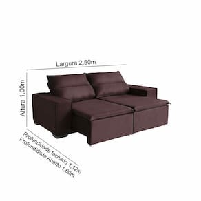 Medidas do Produto:Altura: 1,05mtCumprimento fechado: 1,25cmCumprimento aberto: 1,60cmLargura: 2,50cmInformações Extras:Peso suportado: 120kg por pessoaGarantia: 3 mesesFabricante: De casa décor e estofadosInformações Importantes:- OS TECIDOS PODEM SOFRER ALTERAÇÕES DE TONALIDADES DEPENDENDO DO LOTE DE PRODUÇÃO E TAMBÉM DA RESOLUÇÃO DA TELA DO SEU MONITOR/CELULAR.- Os objetos que ambientam as fotos não acompanham o produto.