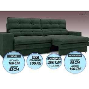 Sofá Pegasus 2,00m Assento Retrátil e Reclinável Velosuede - NETSOFAS - Verde