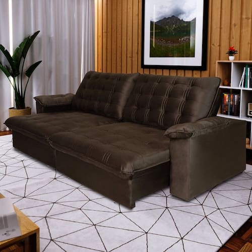 O encosto preenchido com fibra siliconada proporciona um apoio suave e aconchegante, moldando-se perfeitamente ao contorno do seu corpo para garantir horas de relaxamento sem igual. O assento, composto por espuma D33, oferece um suporte firme e confortável, garantindo que você possa desfrutar de longas sessões de entretenimento ou simplesmente relaxar após um longo dia. Além do conforto inigualável, o Estofado Pullman foi projetado para durar. Com suporte de até 150KG. Produto Montado: Sim Acompanha Almofadas extras: Não Almofada do assento: Fixa Almofada do encosto: Fixa Altura do assento até o chão: 52.0000 Altura do Encosto: 65 cm Altura dos Pés: 3 cm Ambiente Principal: Sala de Estar codigo_ean: 7909903690666 Complexidade da Montagem: Baixa: pode ser montado por uma pessoa sozinha Cor: Marrom Cor do Produto: Marrom Densidade do Assento: D-33 Enchimento do Assento: Espuma Enchimento do Encosto: Fibra Siliconada Firmeza do Assento: Firme Itens Inclusos: CERTIFICADO DE GARANTIA Material dos Pés: PVC Necessita Montagem: Sim Origem do Produto: Nacional Peso: 105,73 kg Pet Friendly: Não Possui Percintas Elásticas: Sim Possui Pés: 08 Possui Rodízio: Sim Profundidade Quando Estendido: 1.75 Recomendações de Uso, Manutenção e Limpeza: Uso: Evite sentar-se nos braços do estofado, pois isso pode causar danos à estrutura. Distribua o peso de forma uniforme ao sentar-se para evitar desgaste excessivo em áreas específicas. Evite pular ou apoiar objetos pesados no estofado para evitar danos. Manutenção: Faça uma inspeção regular do estofado para identificar quaisquer sinais de desgaste, rasgos ou danos. Aperte os parafusos e verifique a estabilidade da estrutura periodicamente. Caso note algum problema, como afundamento excessivo no assento, consulte um profissional qualificado para reparos. Limpeza: Para remover poeira e sujeira do estofado, utilize um aspirador de pó com o acessório de escova. Em caso de derramamento de líquidos, limpe imediatamente com um pano limpo e seco, evitando esfregar para não espalhar a mancha. Para manchas mais difíceis, utilize um detergente neutro diluído em água morna e aplique suavemente com um pano macio. Em seguida, remova o excesso com um pano úmido e seque completamente. Proteção: Considere o uso de capas p Rodízio com Trava: Sim Sistema de Montagem: MANUAL Suporta Até (kg): 150 kg Tecido Predominante: Veludo Tipo de Encosto: Regulável