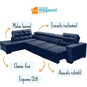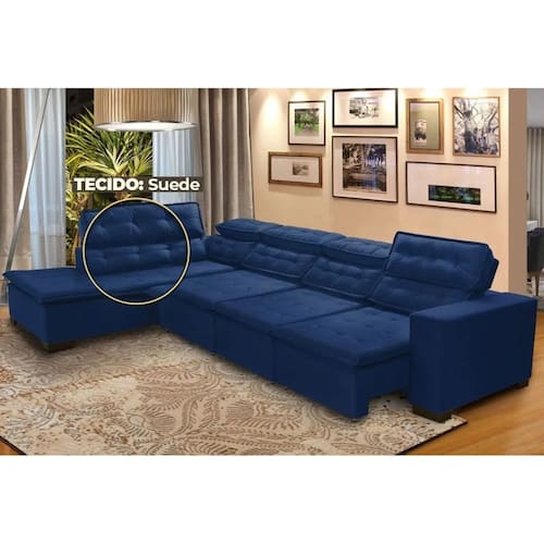 Renove com muita ousadia e elegância o seu ambiente preferido de descanso e descontração, com o Sofá 7 Lugares de Canto Retrátil e Reclinável Sttilo com Chaise 3,60 no TECIDO SUEDE da MegaSul, qual possui encosto reclinável, com catraca silenciosa 5 estágios, almofadas fixas de fibra siliconada, ideal para você aproveitar o seu momento de assistir seus programas de TV preferidos, ou reunir a família junto! Valorize e complete o seu lar com muita beleza e funcionalidade! Aproveite e experimente o novo! O tecido SUEDE oferece uma boa resistência a manchas e ainda danos devido a umidade e por isso é bastante durável. Quer deixar seu ambiente com um ar de sofisticação??? Então invista no que há de melhor, o sofá Sttilo :) Estrutura do Sofá 7 Lugares de Canto Retrátil e Reclinável Sttilo é eucalipto tratado de reflorestamento ecologicamente correto. O assento é retrátil, pillow, espuma D-28, revestido com manta fibra siliconada, molas individuais bonnel, corrediça metálica, percinta elástica. Dados Técnicos do Sofá 7 Lugares Sttilo: Tamanho da Chaise: 2,20mLado Chaise : DireitoLargura: 3,60mAltura: 95cmProfundidade Assento fechado: 93mProfundidade Assento aberto: 1,33m Cor: CINZATecido : SUEDE - CLASSE A Dúvidas Frequentes : 1. Posso Escolher a COR do produto ? Sim, Estofado disponível em 8 cores, para escolher outra a COR informe o código nas observações adicionais ao finalizar a compra, ou aguarde nossos atendentes confirmarem via fone. 2. Posso Escolher o lado da CHAISE ? Sim, A chaise pode ser tanto direita quando esquerda de quem senta. Informe na observações (Chaise "Esquerda ou Direita" de Quem senta ) 3. Podemos modificar as medidas do Sofá???Não, as medidas são padrão de Fábrica. ***OBS: Sempre entramos em contato com todos os clientes via telefone ou whats app para confirmar a posição da Chaise e a Cor. Somente será enviado para a produção com a confirmação dos clientes. Por isso é muito importante atualizar o telefone no cadastro no momento do pedido. Informações Adicionais: Garantia de 90 dias para defeitos de fabricação; Limpeza ou Manutenção: Utilizar escova com cerdas macias. NÃO utilizar produtos Abrasivos. Montagem e instalação por conta do comprador; As imagens ambientadas são meramente ilustrativas e podem apresentar itens que não compõe o produto; As cores do produto podem variar de acordo com o monitor, a iluminação do ambiente ou sua percepção visual. Informações sobre a entrega: VERIFIQUE as MEDIDAS para garantir que o sofá passe na porta e nos corredores de sua residência; NÃO NOS RESPONSABILIZAMOS por SUBIR o sofá por ESCADAS, NEM IÇAR o sofá; biente ou sua percepção visual.
