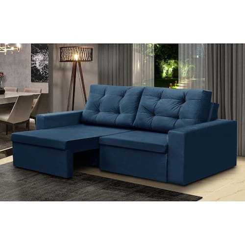 Sofá Retrátil 2 Lugares 1,80m Liz Suede Azul Adonai Estofados - Azul Marinho