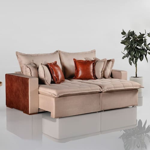 Imagina chegar em casa, se jogar no sofá retrátil e sentir aquele abraço macio? Nosso sofá que vira cama é perfeito para quem busca conforto e funcionalidade no dia a dia. Com cores clean que combinam com qualquer ambiente, ele se transforma em cama em segundos, garantindo mais comodidade para você e suas visitas. Os detalhes laterais sofisticados dão um toque moderno, enquanto as almofadas inclusas proporcionam ainda mais aconchego. Ideal para otimizar espaços com estilo, ele é a escolha certa para seu lar!