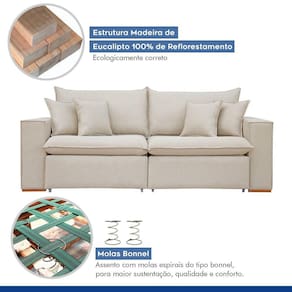 Operação Simplificada: O mecanismo retrátil é fácil de usar, permitindo que você ajuste a posição com facilidade e precisão. Acompanha Almofadas extras: 04 Almofada do assento: Fixa Almofada do encosto: Removível Altura do assento até o chão: 48 Altura do Encosto: 47 Altura dos Pés: 2.5 Ambiente Principal: Sala de Estar Complexidade da Montagem: Baixa: pode ser montado por uma pessoa sozinha Cor: Linho/Cru Cor do Produto: Linho/Cru Densidade do Assento: D-28 Densidade do Encosto: D-18 Enchimento do Assento: Espuma Enchimento do Encosto: Fibra Siliconada Estilo de Braço: Braços Quadrados Firmeza do Assento: Firme Informações Complementares: · Assentos Com Espuma D26;· Assentos Retratil Com Tubo Metálico, Mais Mola Bonnel;· Madeira de Eucalipto Reflorestada, Ecologicamente Correto;· Rodinhas de Silicone, Muito Mais Praticidade e Leveza Ao Abrir o Estofado Retrá Itens Inclusos: 1 Sofá. Material dos Pés: Madeira Necessita Montagem: Sim Origem do Produto: Nacional Peso: 71.7 Pet Friendly: Não Possui Entrada USB: Não Possui Percintas Elásticas: Sim Possui Pés: 08 Possui Rodízio: Sim Profundidade Quando Estendido: cm Recomendações de Uso, Manutenção e Limpeza: Não utilizar produtos químicos. Não utilizar produtos abrasivos. Não molhar. Utilizar pano macio e seco ou levemente umedecido. Resistente à Chuva: Não Revestimento do Braço: Linho Rodízio com Trava: Não Sistema de Montagem: Encaixe. Suporta Até (kg): 120 Tecido Predominante: Linho Tipo de Encosto: Fixo Tipo de Mola: Molas Bonnel Marca: Celflex Ean: 7909903417805