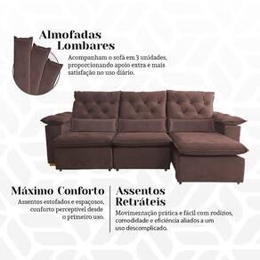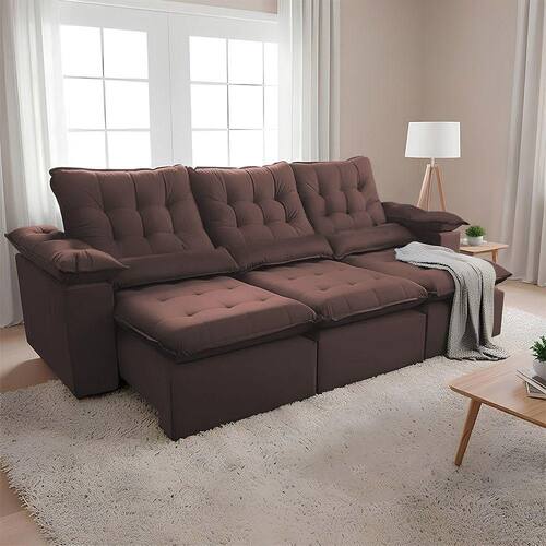 ATENÇÃO: IMAGENS MERAMENTE ILUSTRATIVAS. AS CORES PODEM VARIAR DE ACORDO COM A TELA, MONITOR, ILUMINAÇÃO DO AMBIENTE OU PERCEPÇÃO VISUAL.Sofà RetrÃtil 2.30m Suede Superior Estrutura ReforÃada e Sistema de Alta Abertura Europa Marrom