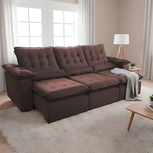 ATENÇÃO: IMAGENS MERAMENTE ILUSTRATIVAS. AS CORES PODEM VARIAR DE ACORDO COM A TELA, MONITOR, ILUMINAÇÃO DO AMBIENTE OU PERCEPÇÃO VISUAL.Sofà RetrÃtil 2.50m Suede Macio Amplo e Conforto Elevado para Ambientes Grandes Europa Marrom