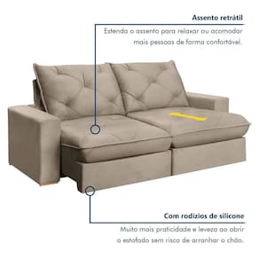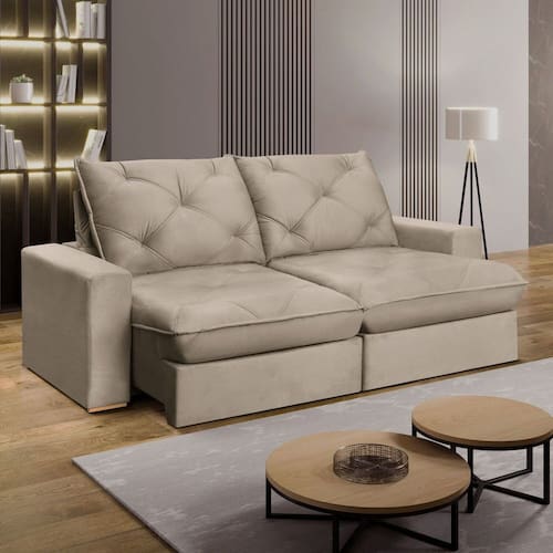Sofá com pillow top é mais confortável? Sim! O pillow top de 25 cm garante maciez extra e sensação de abraço, perfeito para relaxar após um dia corrido.