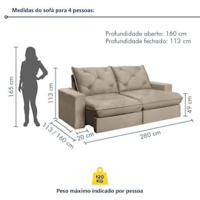 Sofá Retrátil 280cm Pilow 25cm Mônaco Bege