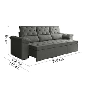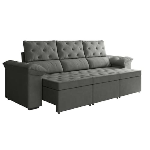 Sofá Retrátil 3 Lugares 2,10m York Suede Cinza Cinza