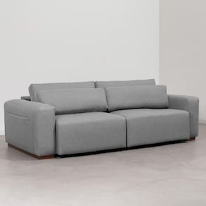 O sofá Essense possui um desenho minimalista, sofisticado e acolhedor com formas mais arredondadas que são um convite a desfrutar momentos de relaxamento e a diminuir o ritmo. Seu assento retrátil e extensível com molas bonnel, espuma D28 e persintas elásticas de excelente qualidade garantem conforto e resistência. As almofadas soltas do encosto são preenchidas com 100% de fibra siliconada, e podem ser encaixadas de diferentes formas para um repouso mais completo. A estrutura é fabricada em eucalipto reflorestado, seco e imunizado e os pés em madeira maciça com acabamento em verniz fosco. Além disso, possui bolso lateral porta objetos para que seu livro, controle remoto, tablet, etc, estejam sempre ao alcance das sua mãos.