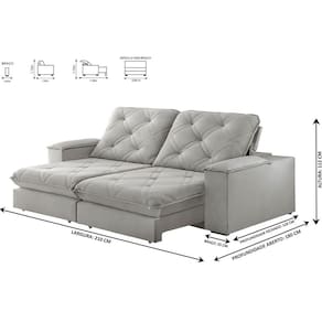Dimensões: Altura: 112 cm Largura: 210 cm Profundidade Fechado: 120 cm Profundidade Aberto: 180 cm -com encosto reclinado- Peso: 94 kg