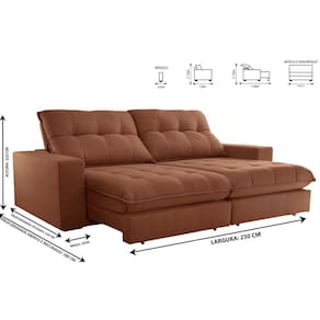 Dimensões: Altura: 112 cm Largura: 230 cm Profundidade Fechado: 120 cm Profundidade Aberto: 180 cm -com encosto reclinado- Peso: 99 kg