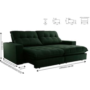 Dimensões: Altura: 112 cm Largura: 230 cm Profundidade Fechado: 120 cm Profundidade Aberto: 180 cm -com encosto reclinado- Peso: 99 kg
