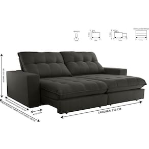 Dimensões: Altura: 112 cm Largura: 230 cm Profundidade Fechado: 120 cm Profundidade Aberto: 180 cm -com encosto reclinado- Peso: 99 kg