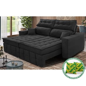 Sofá Retrátil E Reclinável 1,80m Molas Ensacadas E Costura Tripla Cama Inbox Japão Velusoft Preto