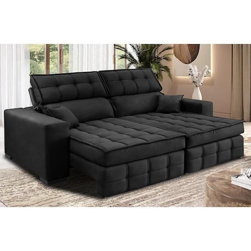 Sofá Retrátil E Reclinável 1,80m Molas Ensacadas E Costura Tripla Cama Inbox Nobre Suede Preto