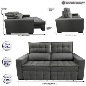 Sofá Retrátil e Reclinável 1,80m Molas Ensacadas e Costura Tripla Cama inBox Nobre. Suede Velusoft - Cinza
