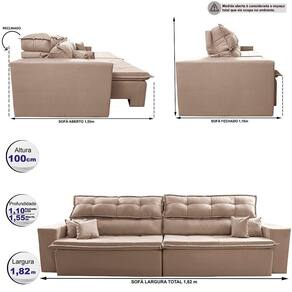 Sofá Retrátil e Reclinável 1,82m Luxos. Cama inBox Velusoft - Bege