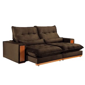 As almofadas vêm junto? Sim, vão duas. Acompanha Almofadas extras: Não Almofada do assento: Fixa Almofada do encosto: Fixa Altura do assento até o chão: 50 cm Altura do Encosto: 70 cm Altura dos Pés: 2,5 cm Ambiente Principal: Sala de Estar codigo_ean: 7900288144195 Cor: Marrom Cor do Produto: Marrom Densidade do Assento: D-26 Enchimento do Assento: Espuma Enchimento do Encosto: Fibra Siliconada Estilo de Braço: Braços Quadrados Firmeza do Assento: Macio Itens Inclusos: 01 sofá Largura do Braço: 25 cm Marca: Kasacomigo Estofados Material dos Pés: Eucalipto Necessita Montagem: Não Origem do Produto: Nacional Peso: 88 kg Pet Friendly: Não Possui Baú: Não Possui Mola: Sim Possui Percintas Elásticas: Sim Possui Pés: 08 Possui Rodízio: Sim Profundidade Quando Estendido: 180 cm Quantidade de Estágios do Encosto: 6 Quantidade de Molas por Assento: 2 Recomendações de Uso, Manutenção e Limpeza: Pano úmido Rodízio com Trava: não Suporta Até (kg): 120 kg Tecido Predominante: Veludo Tipo de Encosto: Regulável Tipo de Mola: Molas Ensacadas Tipo de Sofá: Sofá Comum Marca: Kasacomigo Estofados