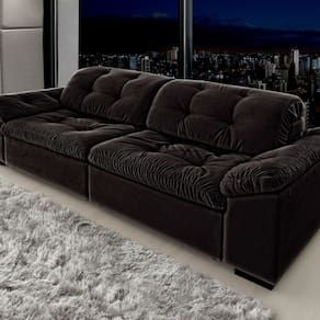 Sofá Retrátil e Reclinável 2 Lugares 240 Cm Pérola Veludo Preto