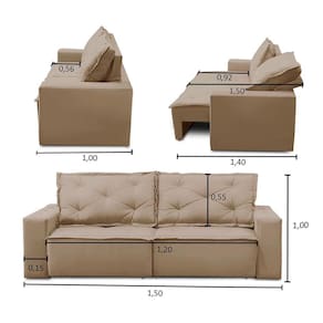 Assento:Feito com espuma D-28 com percintas elásticas de 5mm e Molas, o assento é retrátil que permite você utilizar o sofá com as pernas esticadas e ter todo o conforto que ele possa te proporcionar.