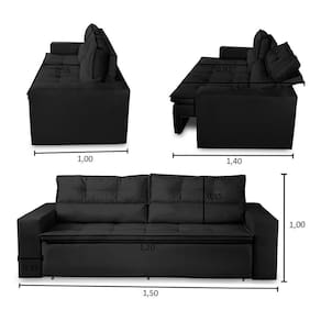 Sofá Retrátil e Reclinável 2 lugares com Molas 1,50m Vegas Suede Preto Adonai Estofados