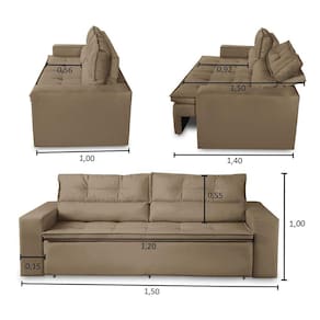Assento: Feito com espuma D-28 com percintas elásticas de 5mm e Molas, o assento é retrátil que permite você utilizar o sofá com as pernas esticadas e ter todo o conforto que ele possa te proporcionar.