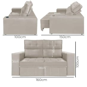 Sofá Retrátil e Reclinável 2 Lugares Londres 1.60cm com Molas Veludo Speciale Home - Bege