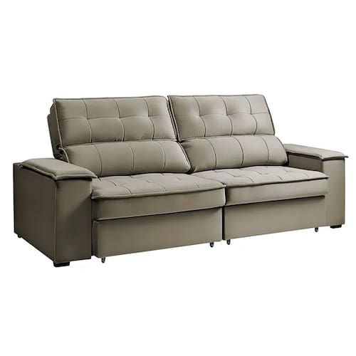 Retrátil e reclinável O modelo composto de 2 lugares, possui encosto reclinável almofadado e braços de fibra com porta copos, que vão garantir o conforto merecido a você e sua família. Aproveite a possibilidade de esticar os assentos, para descansar ainda mais, ou reclinar o encosto conforme sua necessidade.