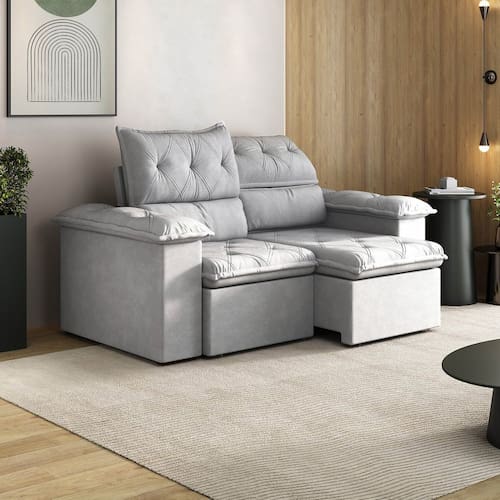Sofá Retrátil e Reclinável 200cm Cupuaçu Cabecasa Madeiramadeira Prata