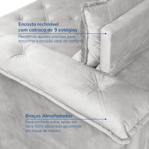 O Sofá Cupuaçu foi pensado para transformar seu descanso em uma experiência ainda mais aconchegante. Com encosto reclinável de 6 estágios, ele permite que você ajuste a inclinação perfeita para relaxar, assistir TV ou tirar aquele cochilo revigorante. O pillow no braço e o encosto macio em fibra siliconada oferecem um toque suave e um apoio confortável, abraçando o corpo em qualquer posição.