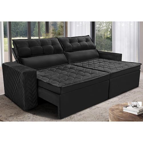 Sofá Retrátil E Reclinável 2,00m Cama Inbox Charm Velusoft Preto