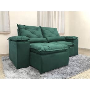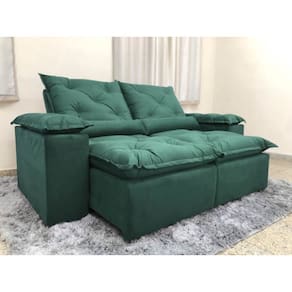 Sofá Retrátil e Reclinável 2,00m em Tecido Veludão C/ Pillow nos Braços Athenas - Montagem Inclusa - Verde
