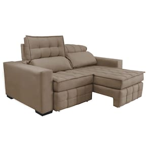 Sofá Retrátil E Reclinável 2,00m Molas Ensacadas E Costura Tripla Cama Inbox Nobre Suede Bege