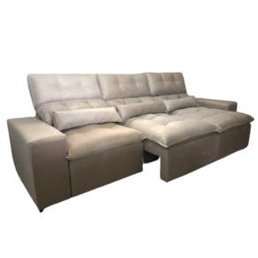 Em primeiro lugar nosso sofá retrátil oferece pra você e sua família o conforto, beleza e acima de tudo uma qualidade que só ele tem. Em segundo lugar contem assento retrátil com espuma D26, e percinta elástica, sua estrutura é de madeira eucalipto 100% reflorestada e seca em estufa e os pés produzidos em madeira e rodízio de silicone. Além disso, seu encosto reclinável em diversas posições com espuma Prorelax. Em suma um excelente sofá.