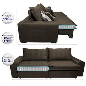 Sofá Retrátil e Reclinável 2,12m com Molas Ensacadas Cama Inbox Supreme Tecido Suede Velusoft Café - Marrom