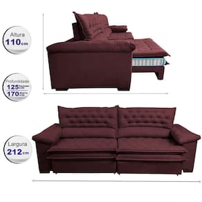 Sofá Retrátil E Reclinável 2,12m Molas Ensacadas Cama Inbox Alemanha De Viscoelástico Velusoft Vinho