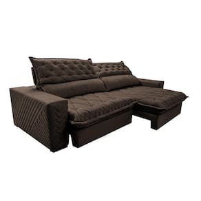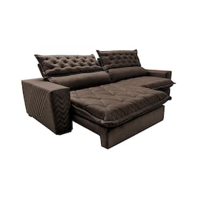 Sofá Retrátil E Reclinável 2,15m Molas Ensacadas Cama Inbox Spazus Com Bordado 3d Velusoft Café